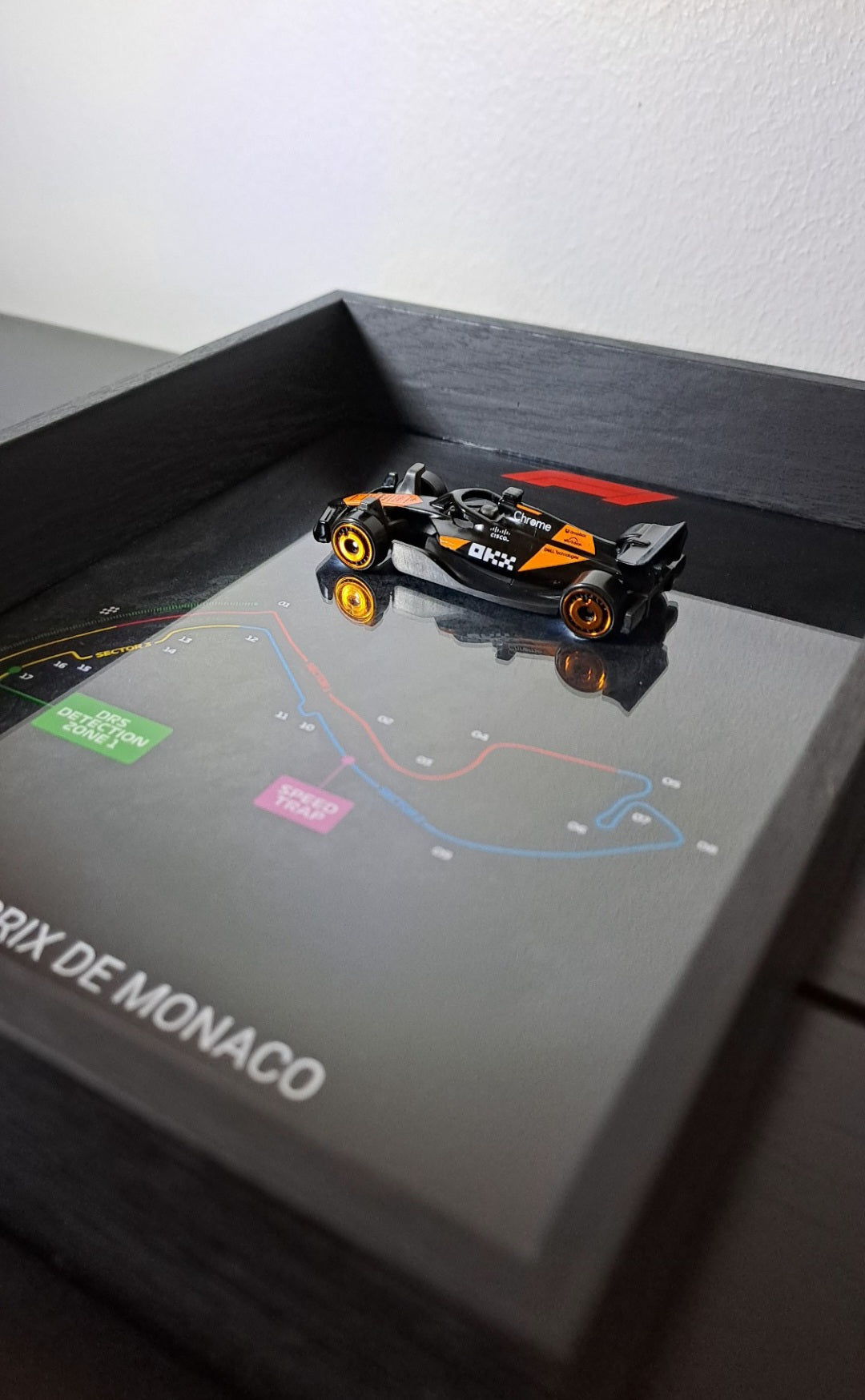 MCLAREN Formula 1 frame HOT WHEELS fits a 22,5cm height 17,5cm width and it has glass.